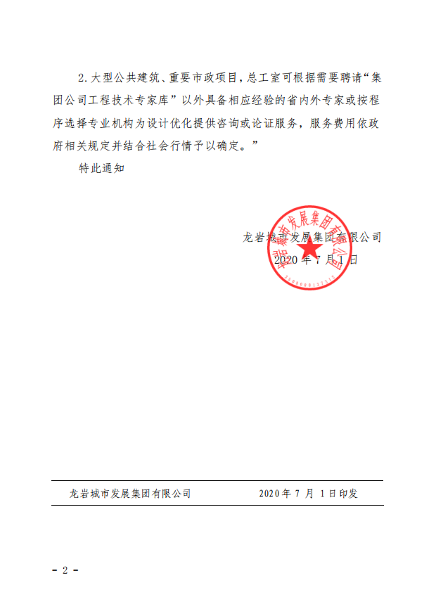 關于《龍巖城市發(fā)展集團 有限公司項目方案、初步設計管理辦法(試行)》補充規(guī)定的通知